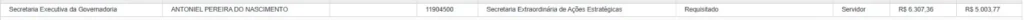 Já Antoniel Pereira do Nascimento, servidor efetivo da Prefeitura de Palmas cedido à Secretaria Executiva da Governadoria, tinha remuneração de R$ 6.307,36. Segundo o relatório da PF, ele foi identificado como pessoa de confiança do governador Wanderlei Barbosa, com presença registrada na residência da sogra do chefe do Executivo durante o esvaziamento do imóvel no dia em que a Corte Especial do STJ confirmou o afastamento do governador.