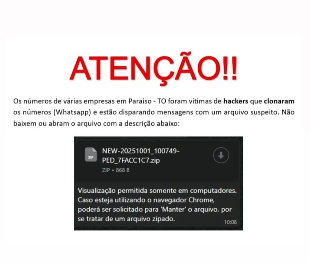 Nesta quarta-feira, 1º, várias empresas e pessoas de Palmas e Paraíso relataram que tiveram seus celulares e computadores supostamente hackeados e clonados através de um arquivo de vírus espalhado pelo Whatsapp.